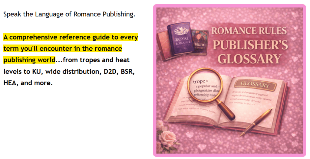 Romance Rules is a comprehensive strategic framework designed to help both new and experienced authors navigate the highly profitable—but often nuanced—romance publishing market.