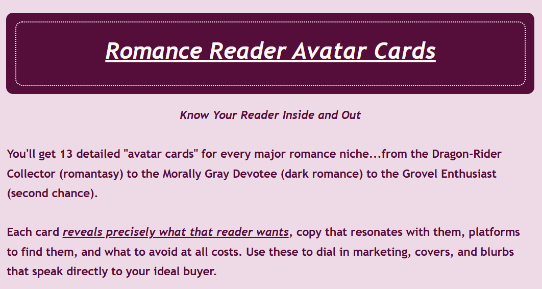 The ultimate goal of the product is to turn publishing from a “guessing game” into a repeatable system. By understanding why romance readers are so loyal and how they binge-read series, the program shows you how to tap into that behavior to build a sustainable, long-term publishing business.